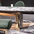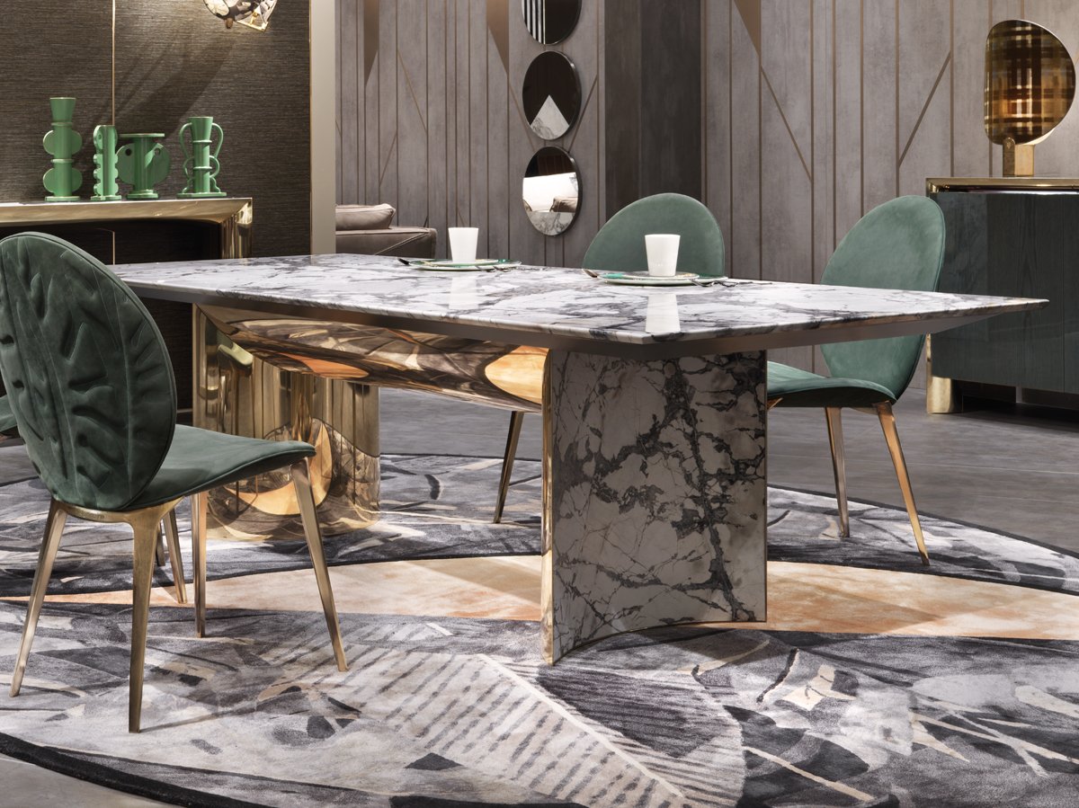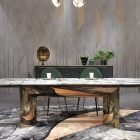 The texture of the stone gives it some depth, and it seems to work well in modern or minimalist spaces. In a more traditional setting, it might feel a bit out of place. But in the right room—maybe something with clean lines and neutral tones—it can anchor the dining area pretty effectively.