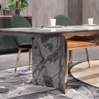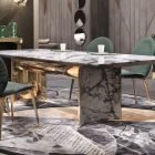 The Kerwan Rectangular Marble Dining Table has this clean, geometric look that feels modern without being overly stark. The marble top is the main feature—natural stone with all the veining and color shifts that come with it. No two tables look exactly the same, which is part of the appeal.
