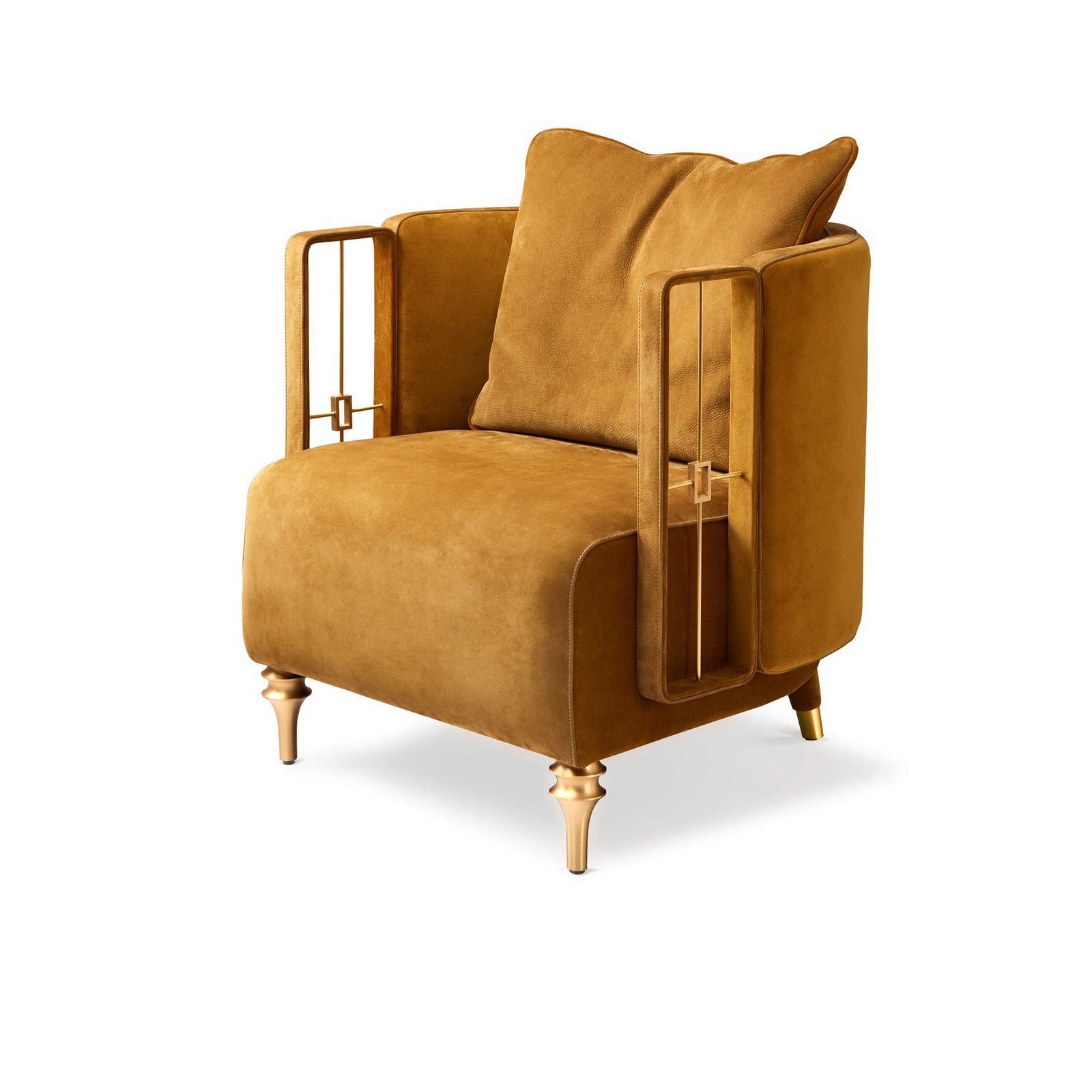 Overall, the Luxury Accent Chair combines solid construction, soft materials, and unique brass details. With its mix of comfort and style, it brings warmth, character, and sophistication to any interior.