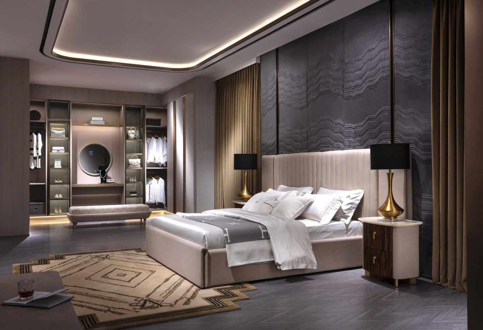 The Kalyste Calvesso Bed captures the essence of modern luxury through refined materials and sophisticated detailing. Designed to anchor high-end bedrooms, this piece combines a commanding presence with understated elegance.