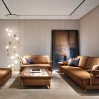 The sofa’s design showcases clean, modern lines with a gently sloped back and deep, inviting seat cushions that promise supreme comfort. The rich, warm cognac color of the nubuck leather develops a beautiful patina over time, making each piece uniquely yours. The material’s soft, velvety texture provides a tactile luxury that genuine nubuck is renowned for.
