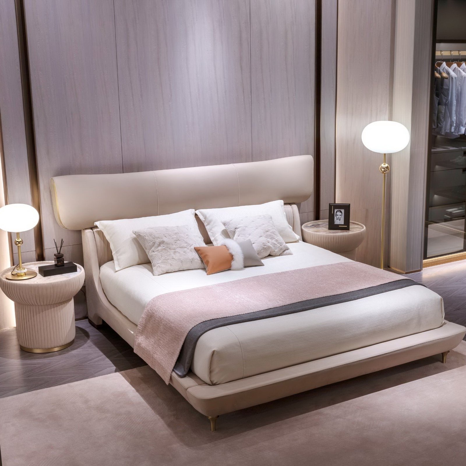 The Kalyste Modern Luxury Bed showcases a sculptural form that blends refined comfort with bold contemporary design. Crafted for high-end interiors, it combines premium materials and artisanal detailing to deliver a bed that is both functional and iconic.