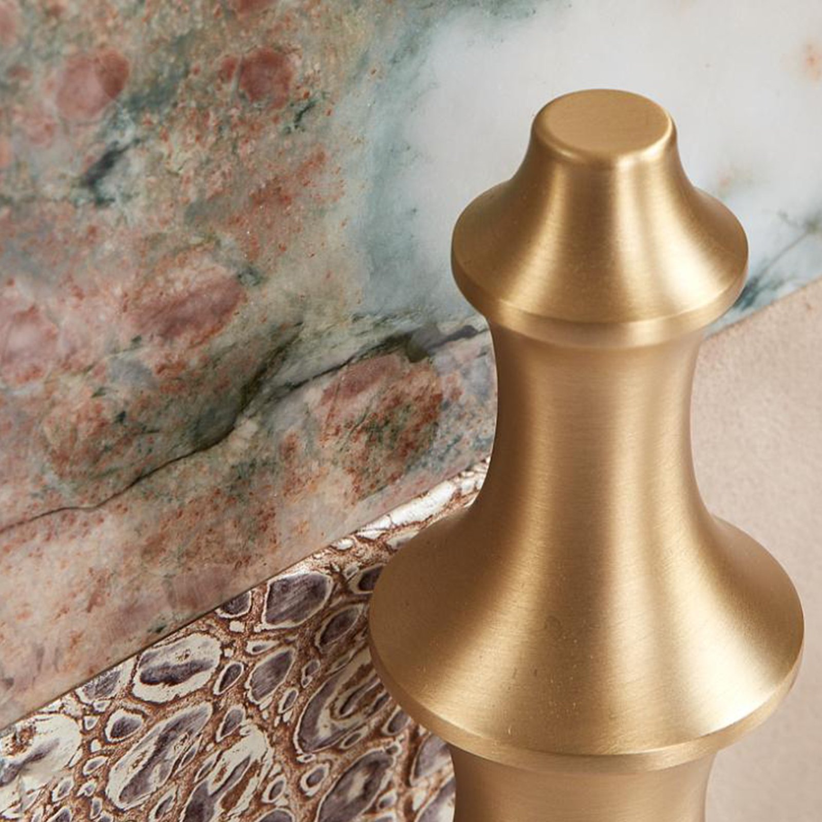 The design is anchored by premium brass legs, sculpted with an architectural silhouette and finished in warm gold. Their sculptural quality creates a striking contrast with the marble’s natural beauty and the leather’s textured finish, balancing modern artistry with timeless luxury.